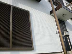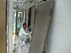 この手の段々となっているガラリ系の雨戸や戸袋は、外住宅塗装の中でも、もっとも手間がかかるものかも知れまません。平面ならずっと塗りやすいんですけどね。 |